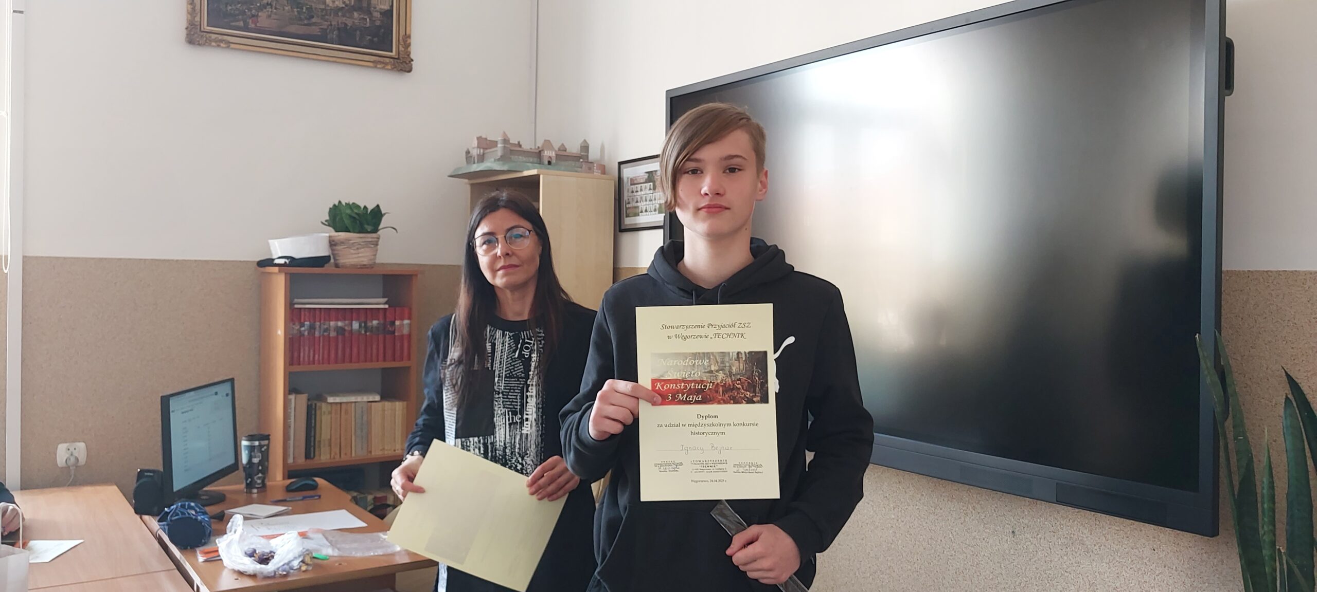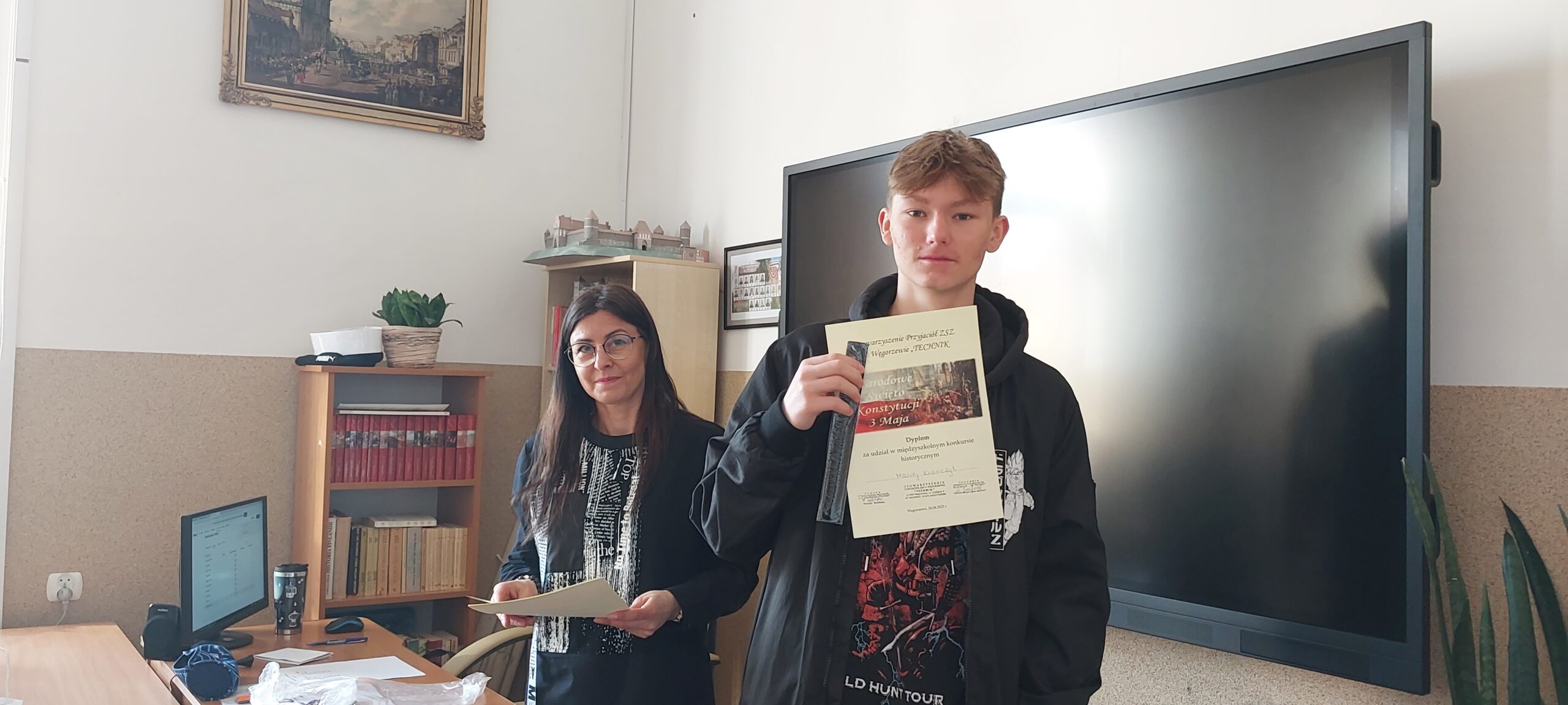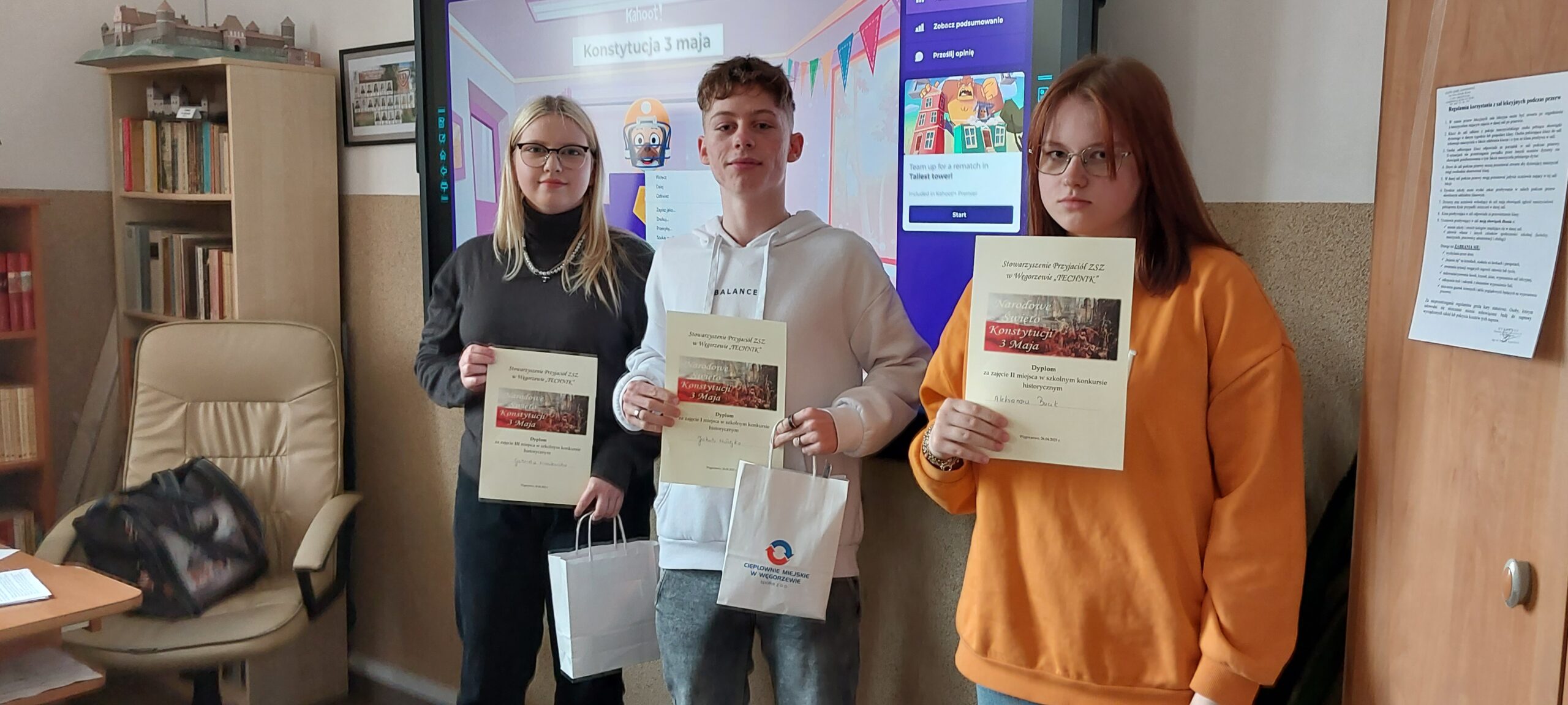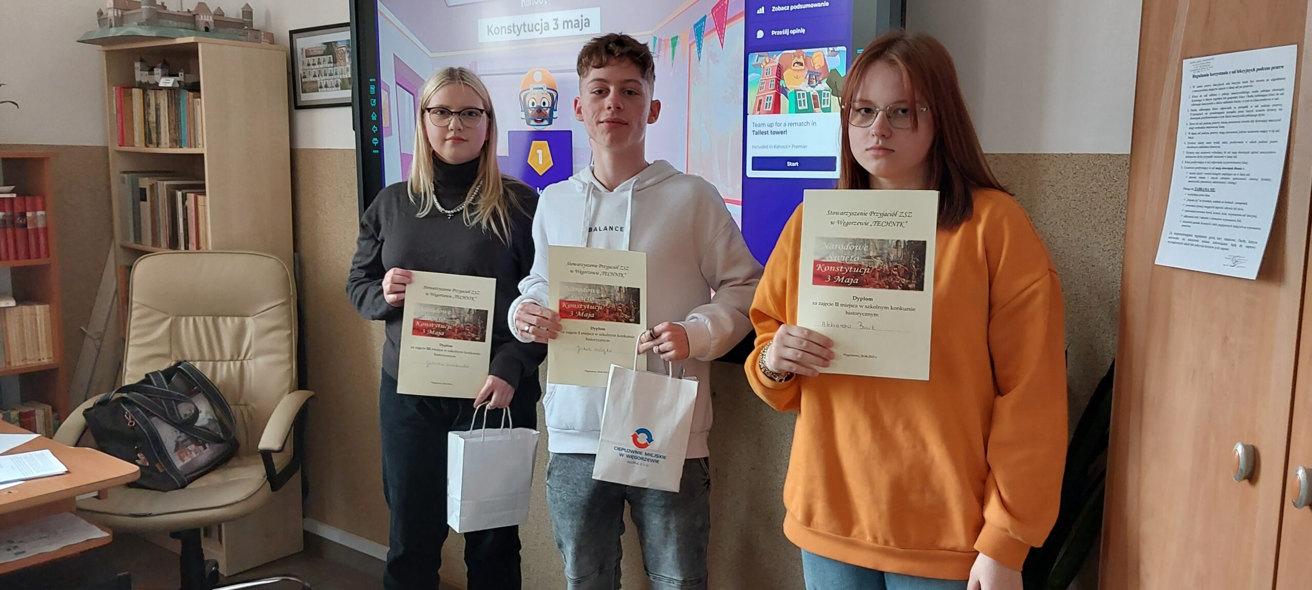 W dniach 24.04.2023 – 26.04.2023 r. w naszej szkole odbyły się konkursy historyczne poświęcone Konstytucji 3 Maja zorganizowane przez Stowarzyszenie Przyjaciół ZSZ TECHNIK w Węgorzewie.